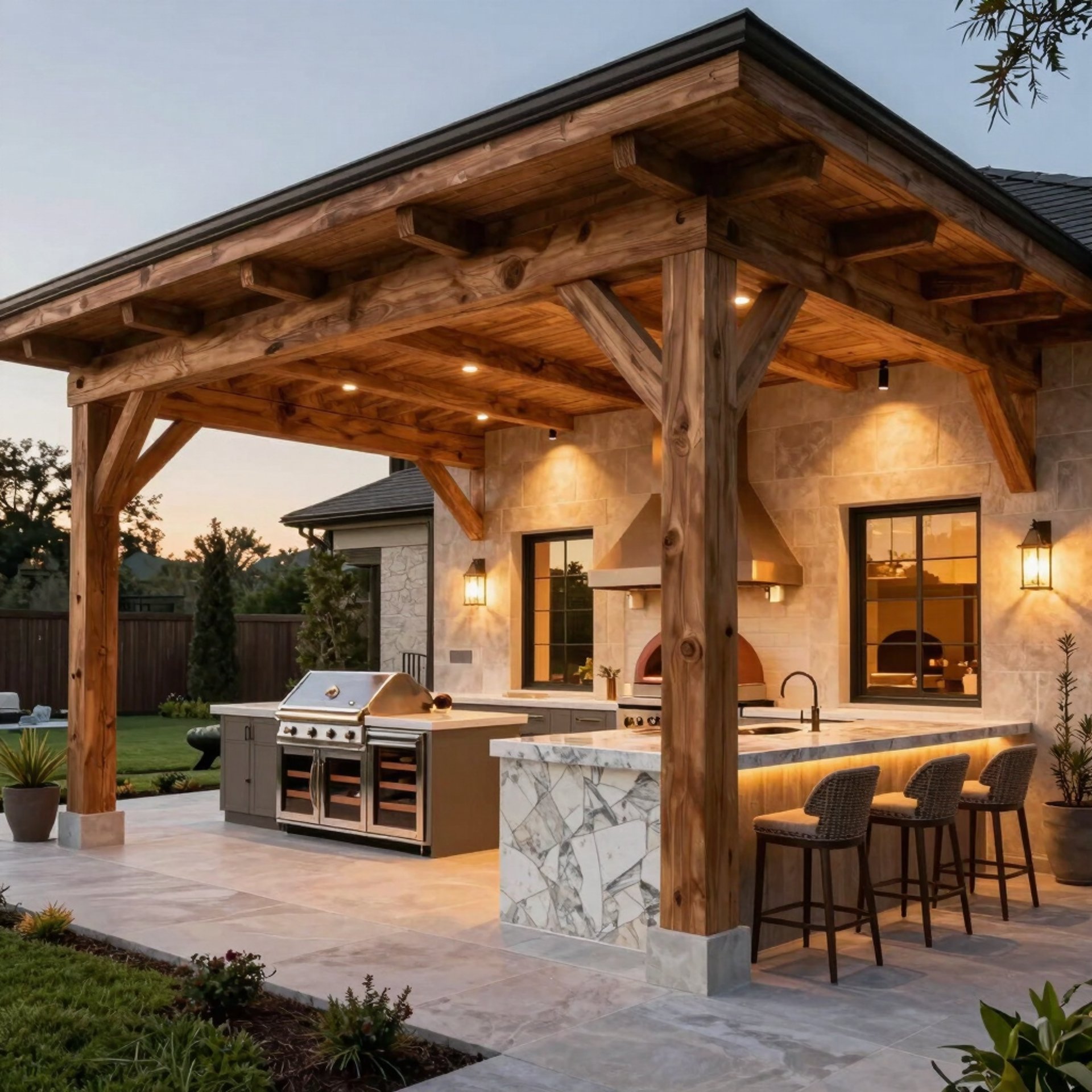 Create stunning outdoor environments with patios, pergolas, seating areas, and landscaping features.