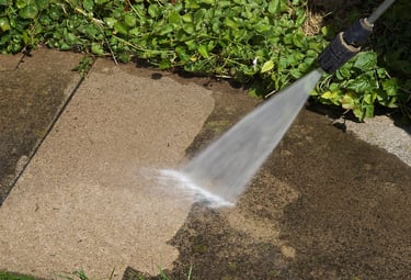 Deep cleaning surfaces with high-pressure water to remove dirt, mold, and stains.