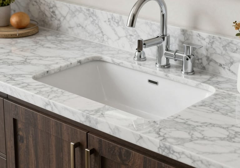 High-quality quartz, granite, or marble countertops that elevate the look of kitchens and bathrooms.